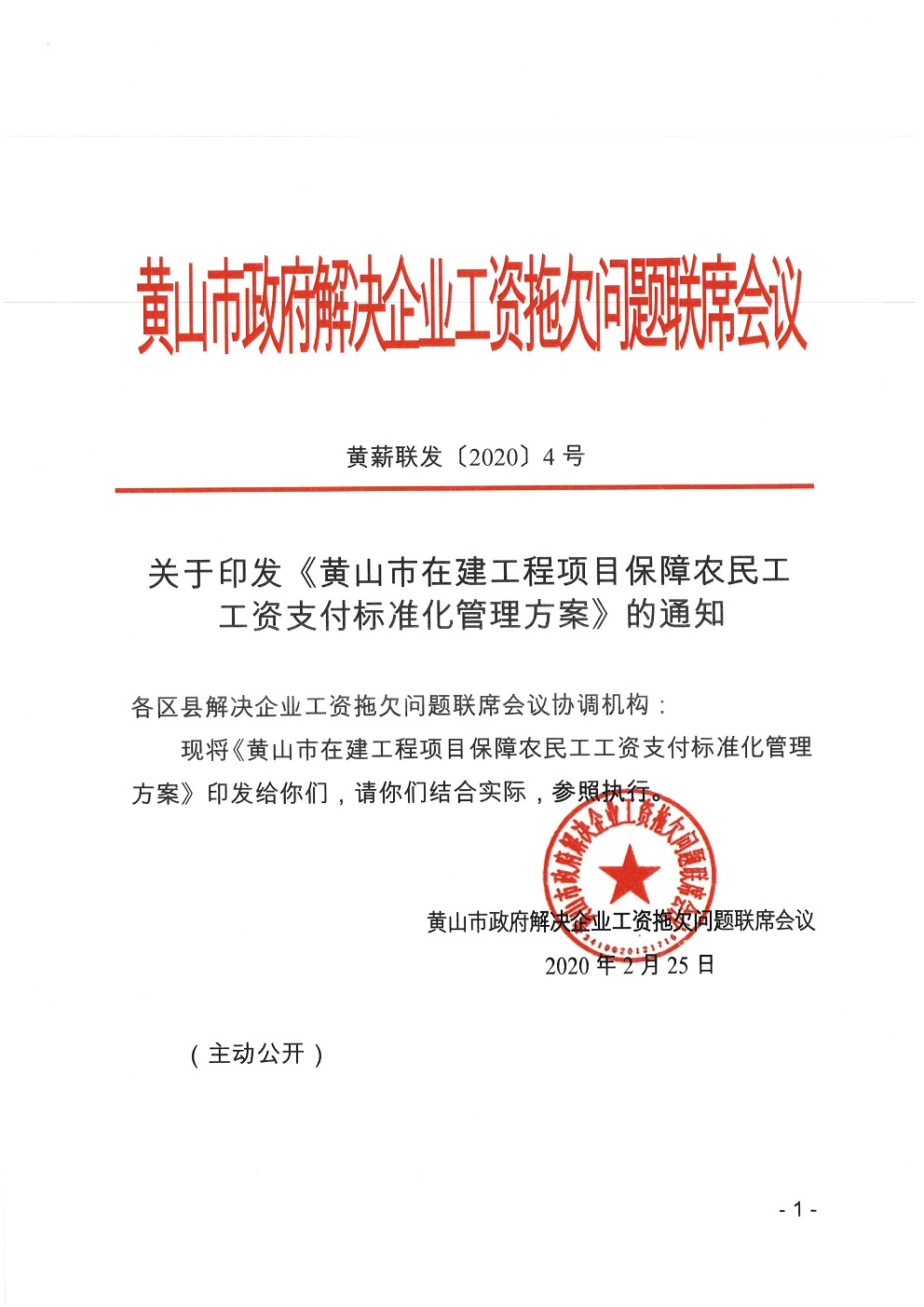 關于印發《黃山市在建工程項目保障農民工工資支付標準化管理方案》的通知.doc